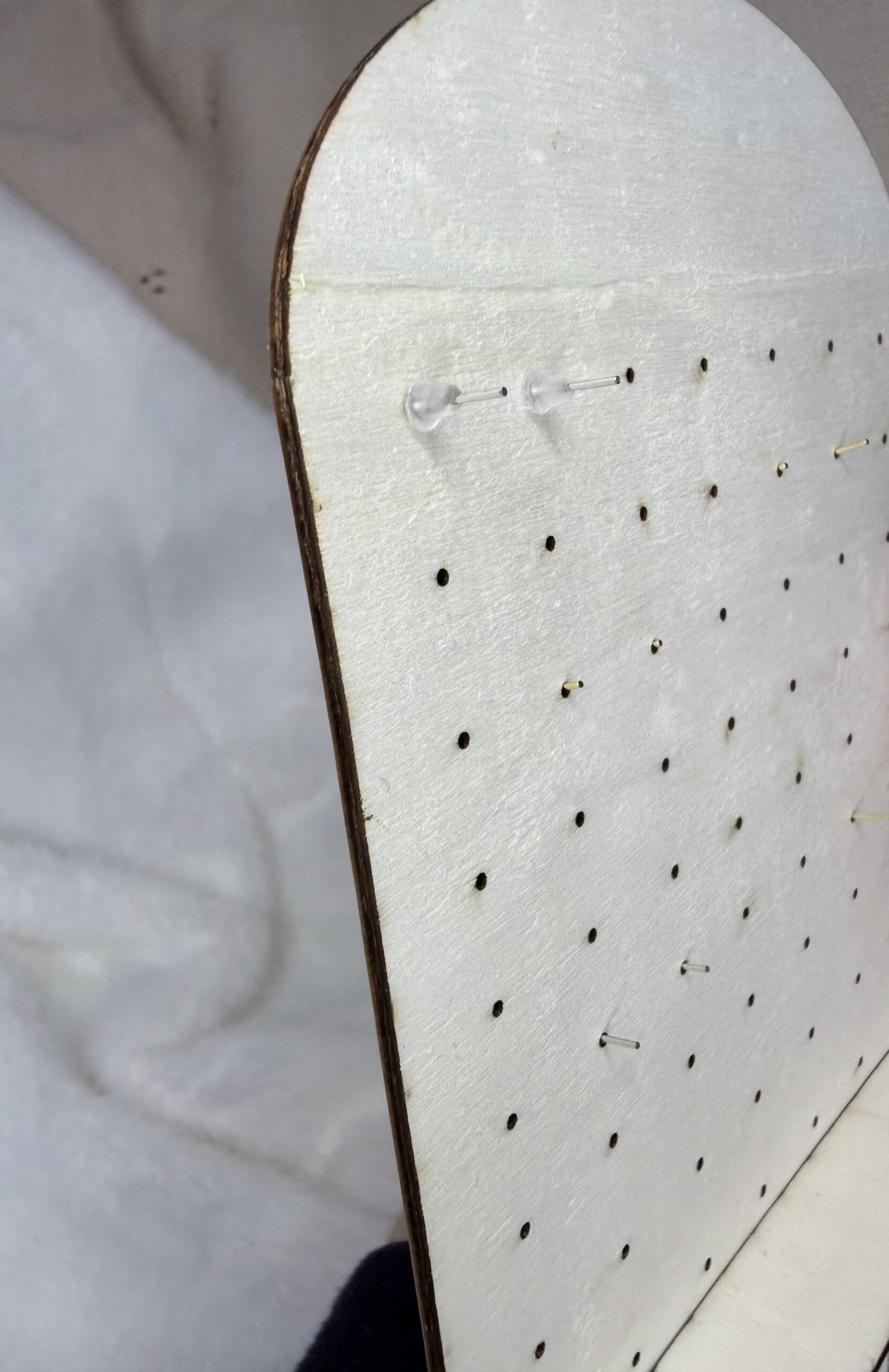 Stojalo ima več lukenj za enostavno shranjevanje in pregledno razporeditev uhanov različnih oblik in velikosti. Primerno je za vsakodnevno uporabo ter lepo dopolni toaletno mizico, polico ali nočno omarico.