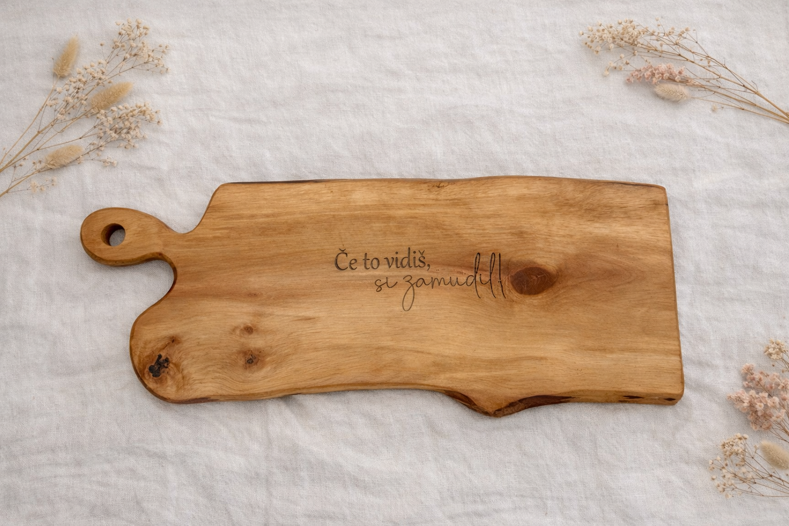 Unikatna lesena servirna deska iz jelše z gravuro – velikost L
